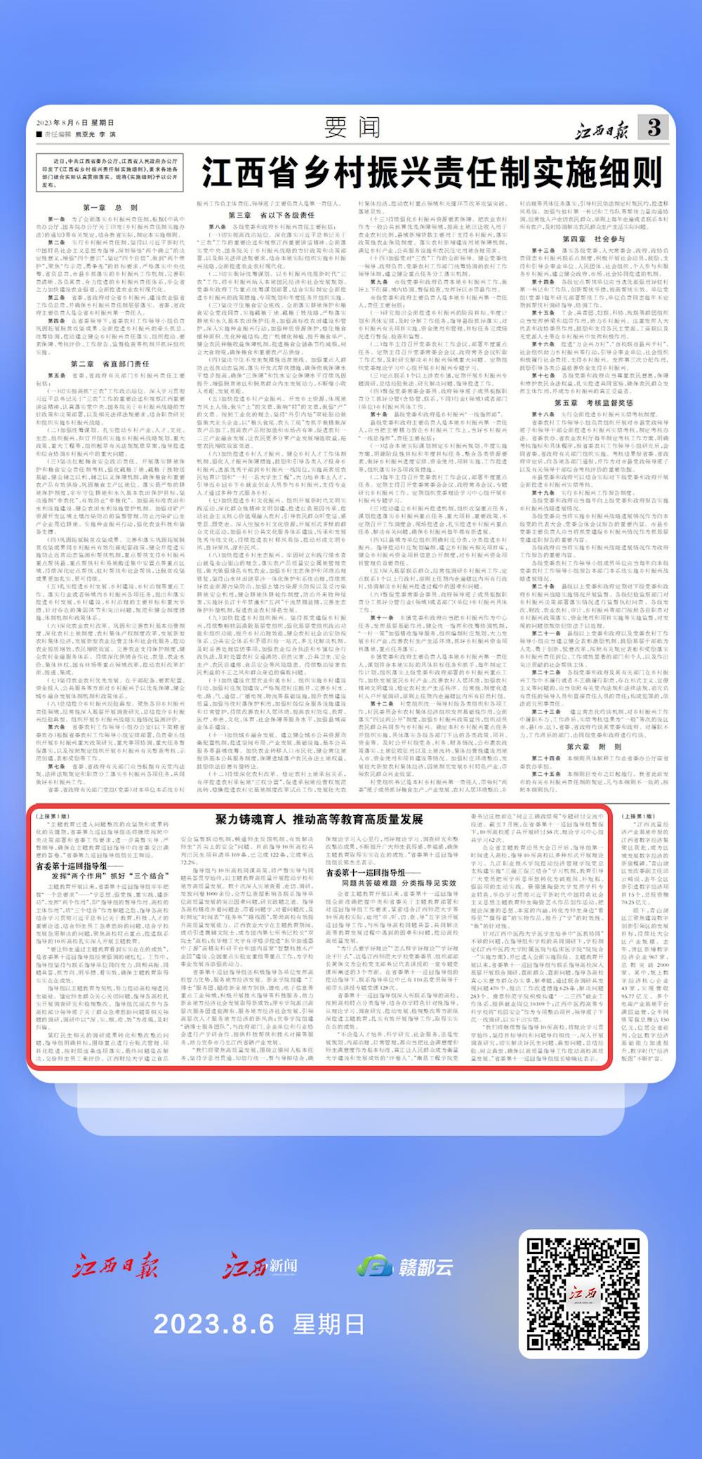 【主題教育】江西日報主題教育專欄:聚力鑄魂育人 推動高等教育高質量發展