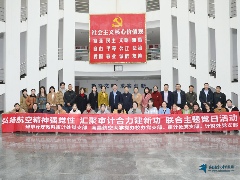 啟航網(wǎng)訊 為深入開展學(xué)習(xí)貫徹習(xí)近平新時代中國特色社會主義思想主題教育,充分發(fā)揮聯(lián)學(xué)聯(lián)建優(yōu)勢,聚焦黨建與業(yè)務(wù)融合,12月5日,省審計廳教科審計處黨支部與我校黨辦校辦、審計處、計劃財務(wù)處黨支部聯(lián)合開展了“弘揚(yáng)航空報國精神強(qiáng)黨性,匯聚審計合力建新功”主題黨日活動。省審計廳黨組成員、副廳長胡雅萍及審計組全體成員,我校黨辦校辦、審計處、計劃財務(wù)處黨支部全體黨員參加活動。我校黨委書記李德平,黨委常委、副校長熊震宇應(yīng)邀出席。