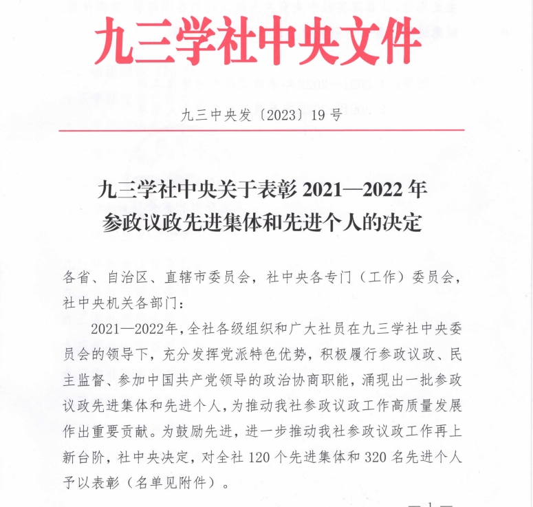 我校教師涂繼亮獲九三學社中央“參政議政先進個人”稱號