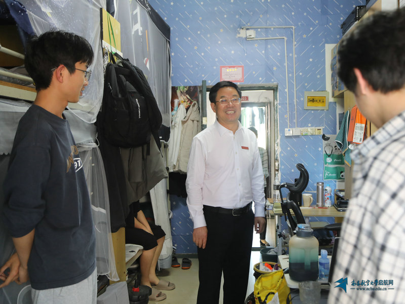 隨后,李德平來到低年級學生宿舍,與大家聊天談心。面對來自五湖四海的同學們,李德平希望大家在大學期間多學習、多提問、多思考,不斷提升專業技能,擴展眼界。同時,要養成良好的生活習慣,培養廣泛的興趣愛好,塑造健康的體魄,提早做好學業規劃、增強自我管理能力,在大學“賽場”上賽出成績、賽出風采。