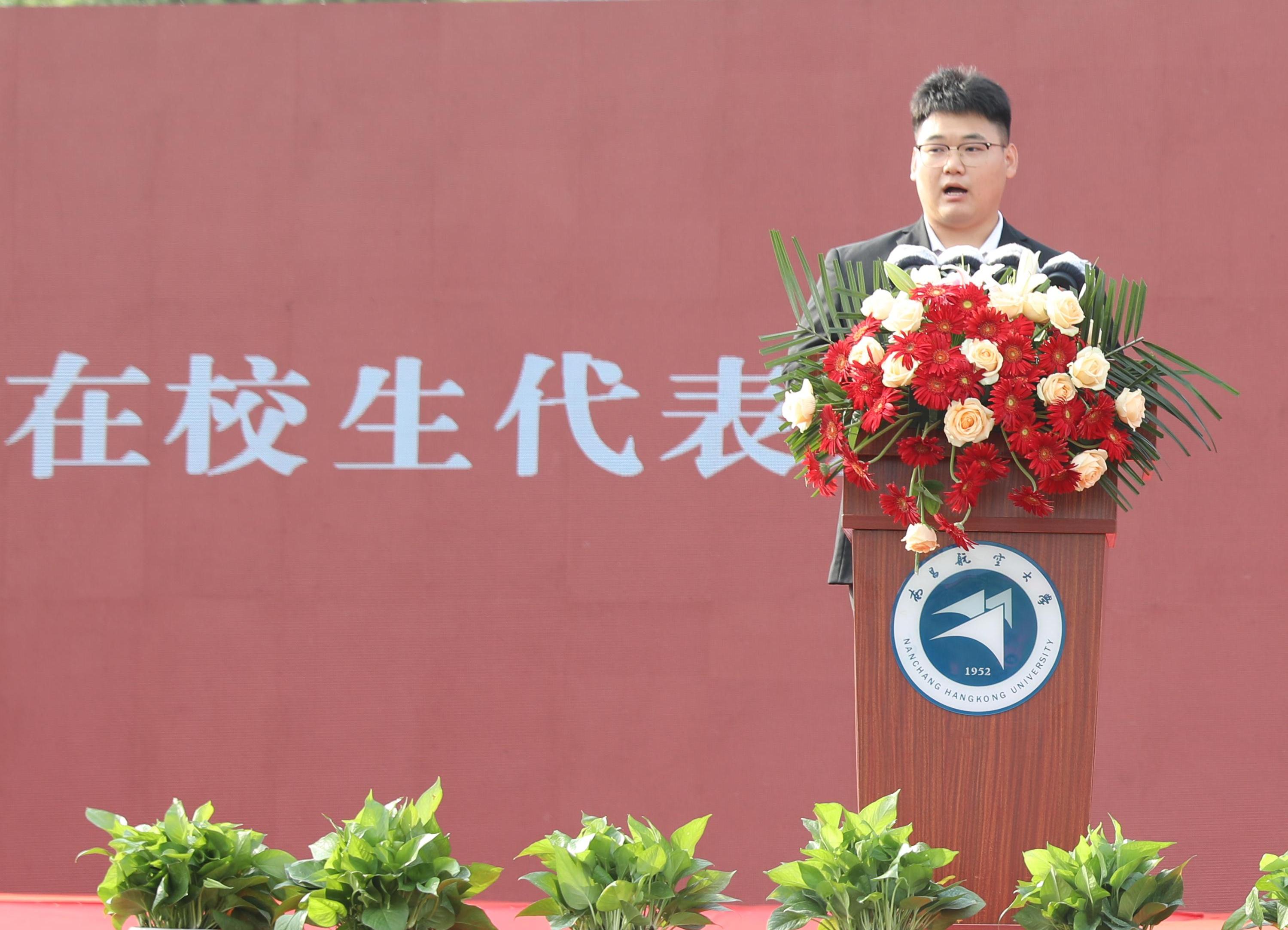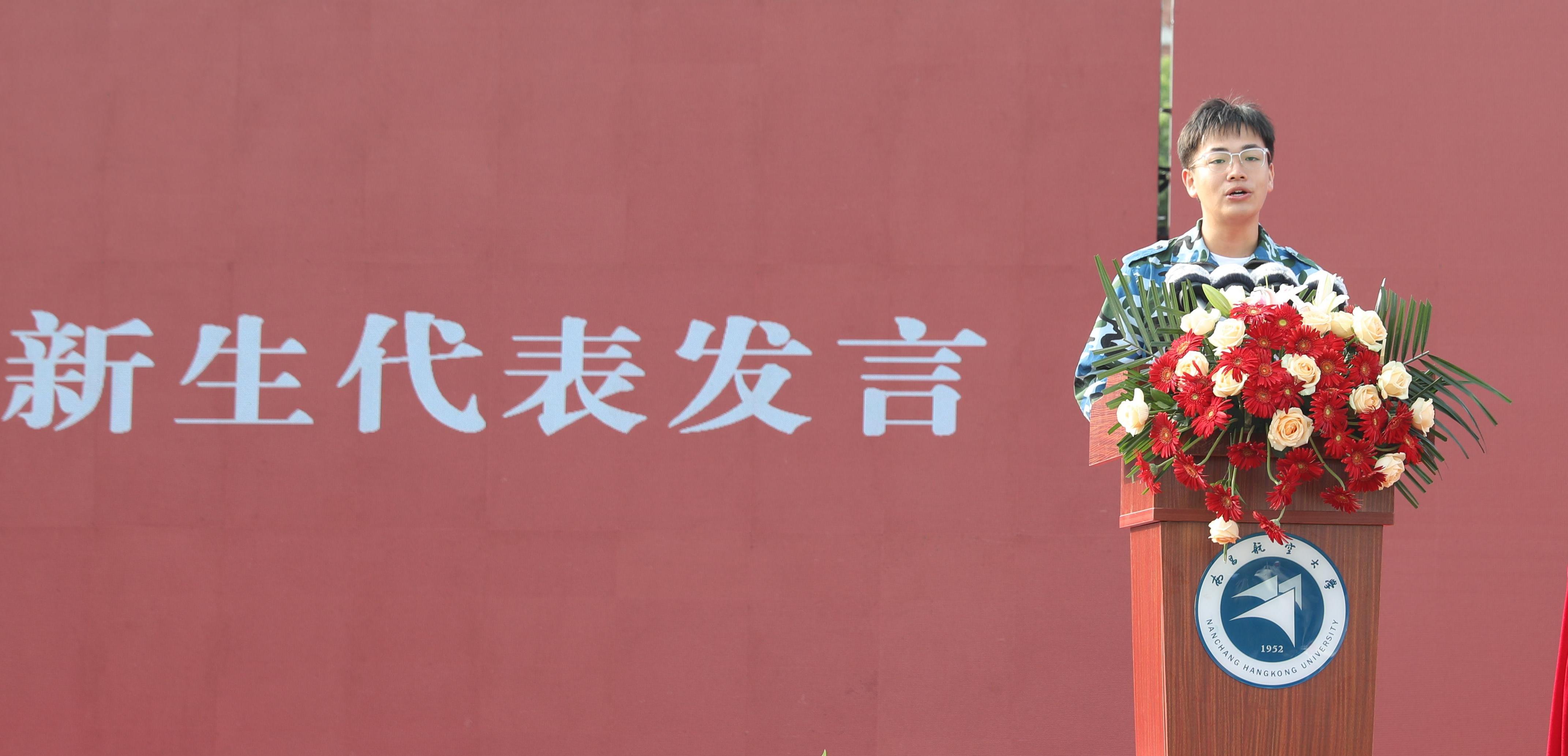 航空制造與機械工程學院飛行器制造工程專業2024級學生葉昂代表新生發言