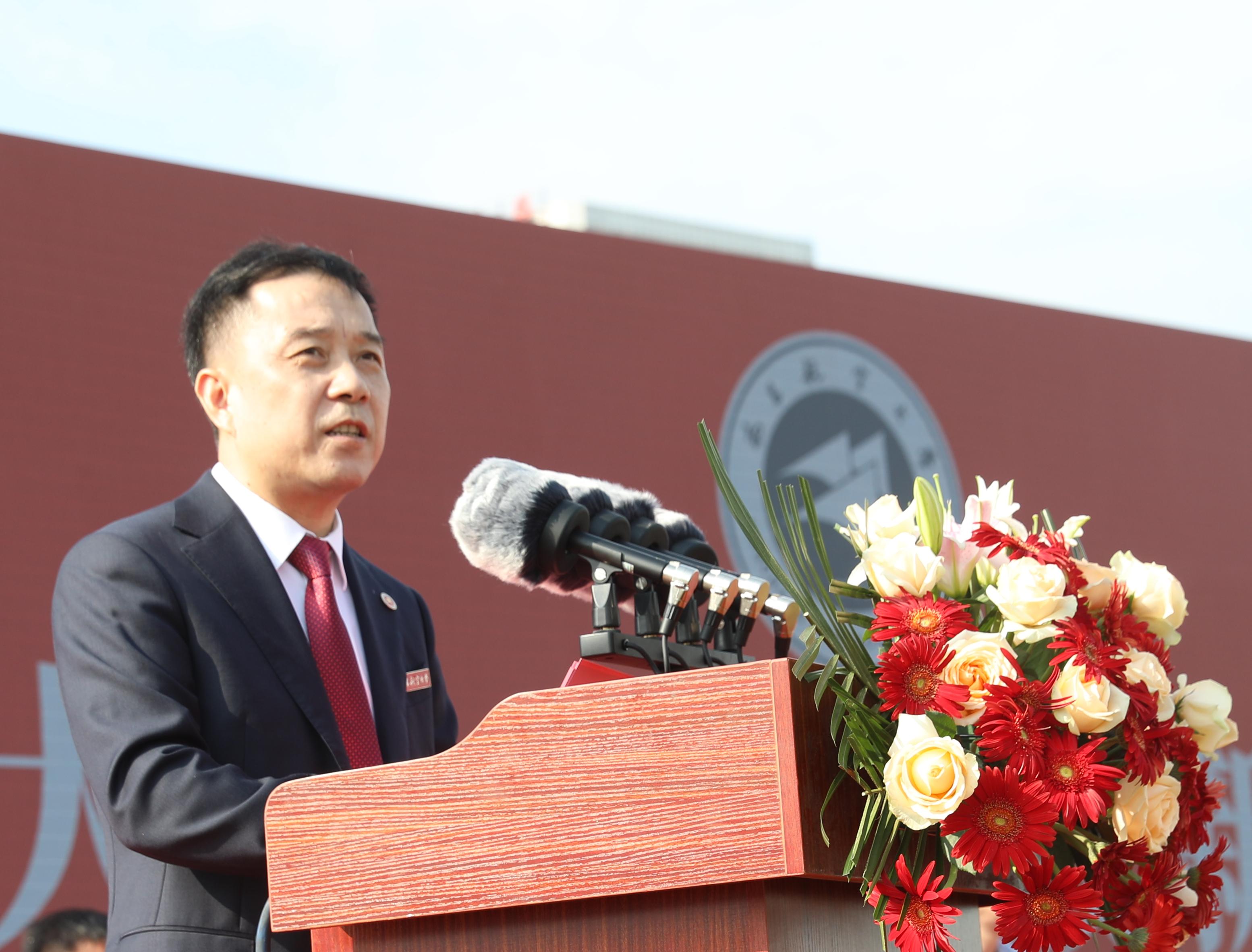 黨委副書記、校長盧超以《爭做“忠誠奉獻 自力更生 艱苦奮斗 勇攀高峰”的航空人》為題深情寄語廣大新生