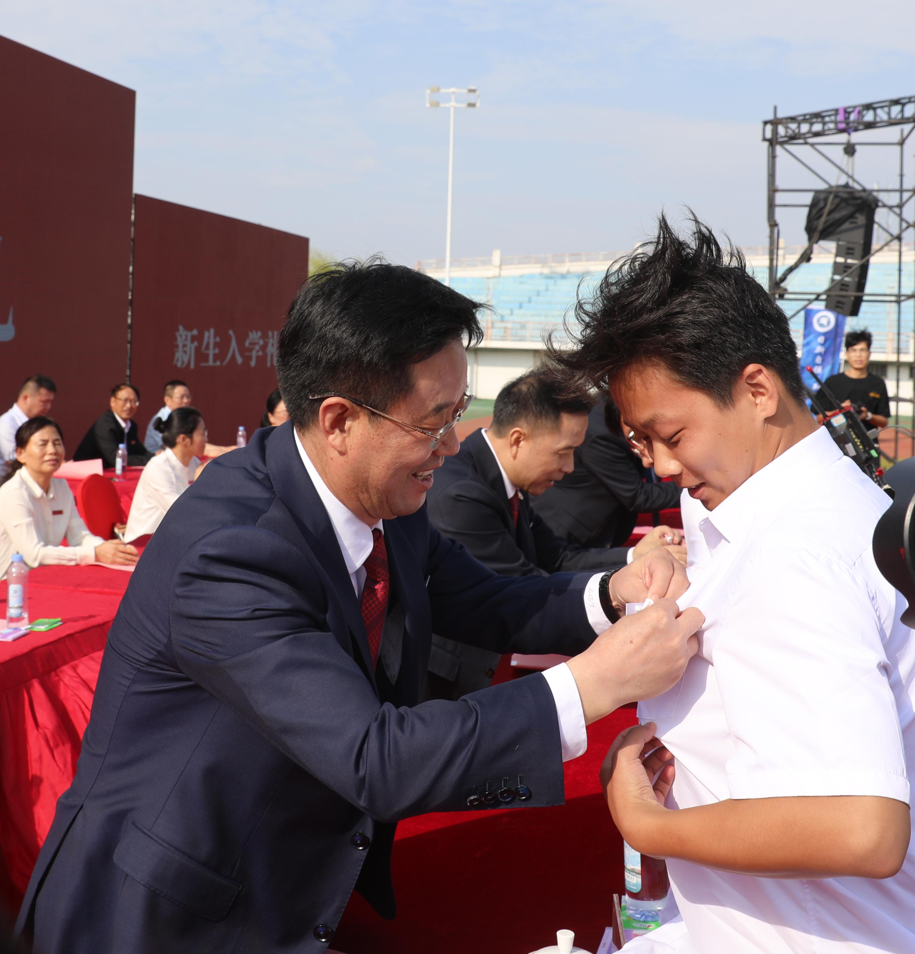 典禮上處處體現了“昌航”細節。校領導為新生代表佩戴校徽,希望自今日起,同學們能夠始終把校園當家園,始終跟學校同呼吸、共命運,奮力書寫絢麗的青春華章,和學校一同向著光榮與夢想,奮楫揚帆再出征!