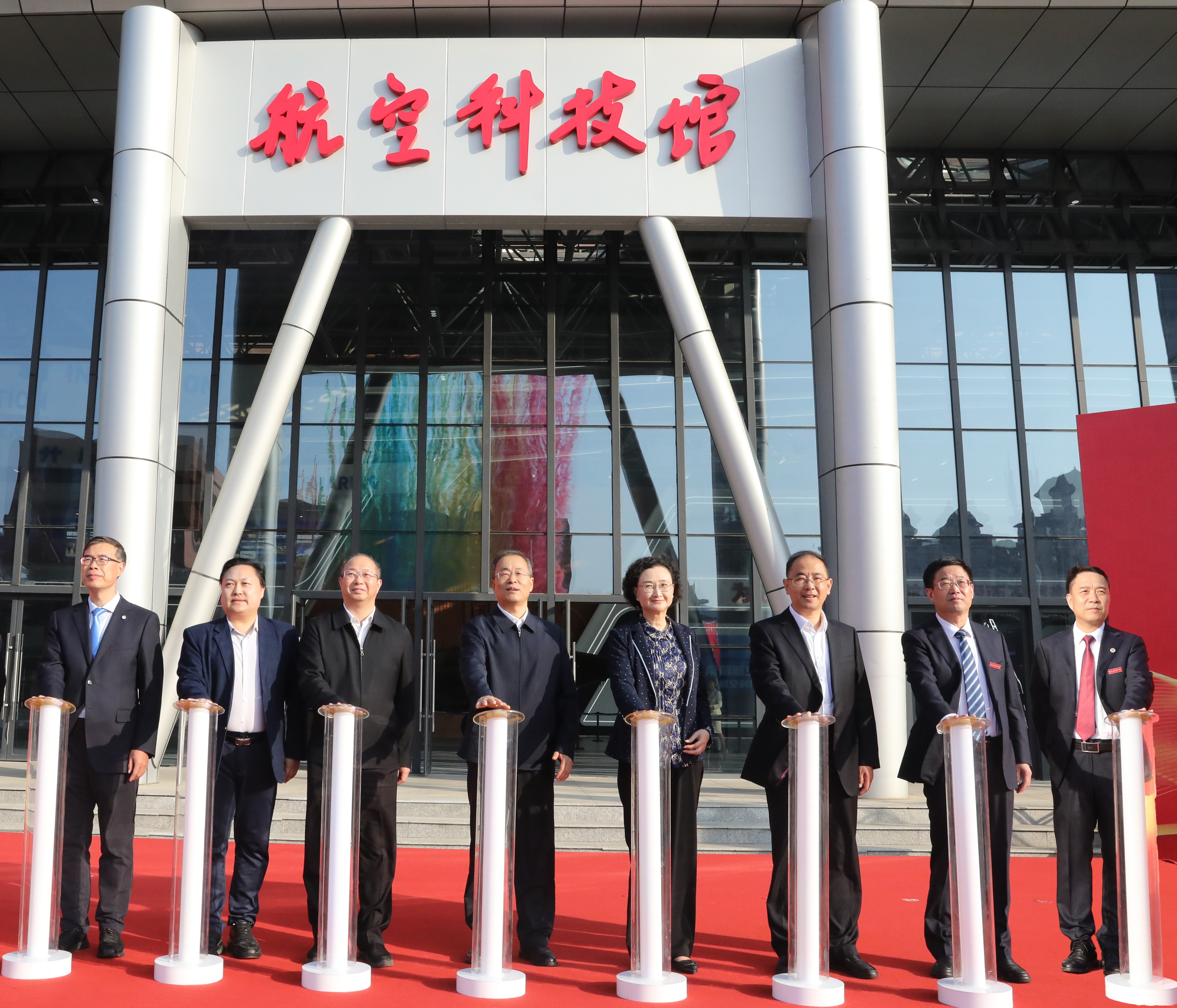 最令人激動的時刻終于到來,孫洪山、向巧、吳永明、徐景坤、陳金橋、蔡二雨、李德平、盧超共同按下啟動鍵,七彩煙花騰空而起,南昌航空大學航空科技館正式開館。現場響起了熱烈的掌聲和歡呼聲,共同慶祝這一具有里程碑意義的時刻。