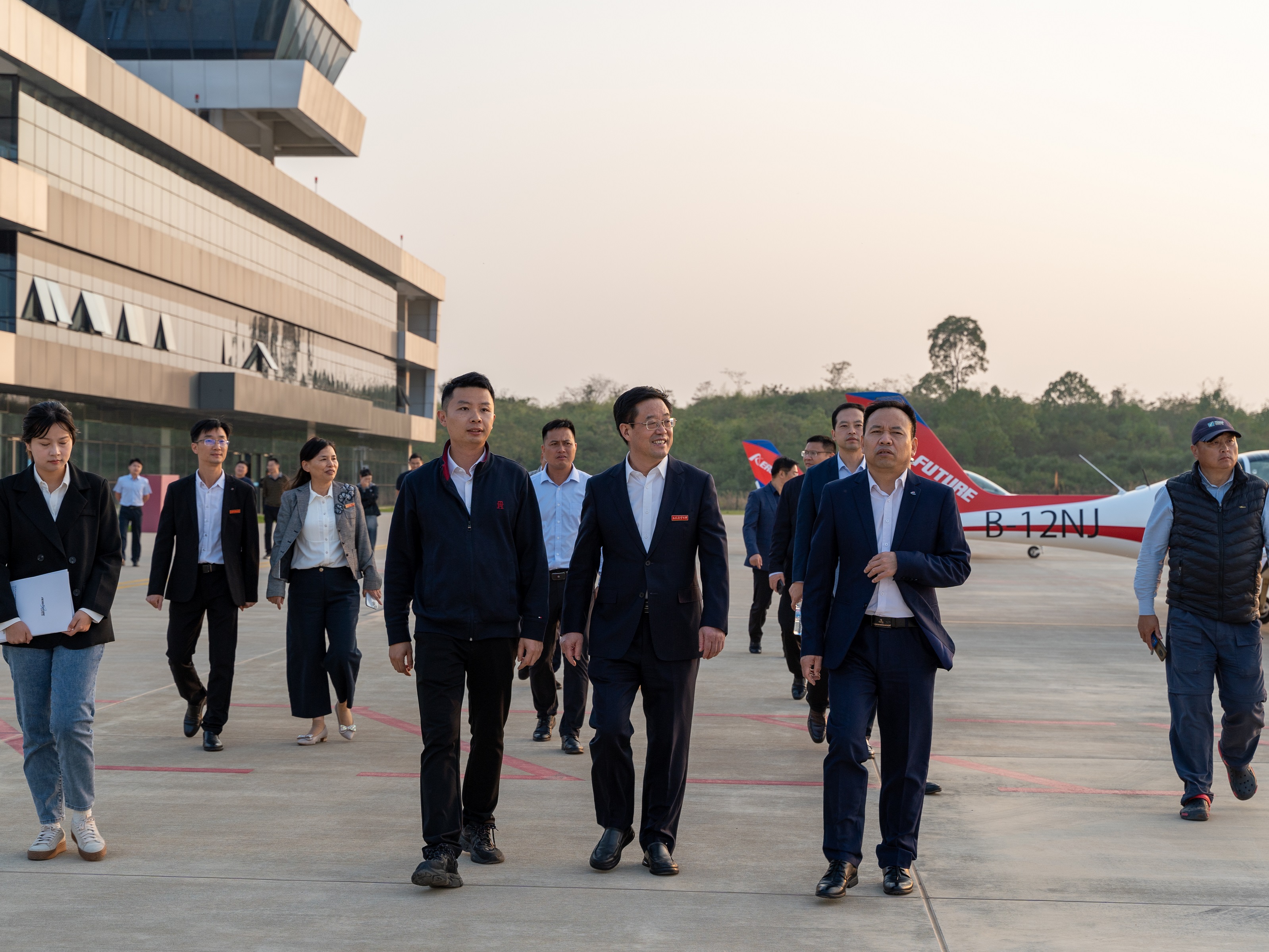 隨后,李德平一行來到共青城低空經濟產業園,參觀了共青城市首個A1類跑道型通用機場,聽取了關于共青城低空經濟產業園、通用機場建設及運營情況的介紹。