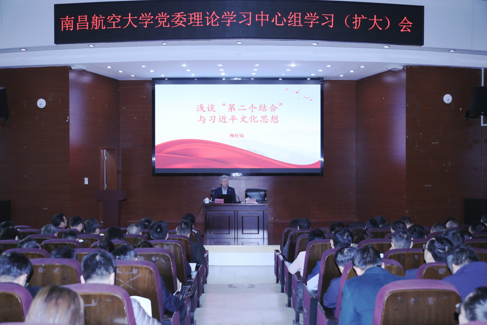 啟航網訊 11月29日上午,學校在逸夫樓第二報告廳召開黨委理論學習中心組學習(擴大)會,邀請江西省委黨史研究室原主任梅仕燦作題為《淺談 “第二個結合”與習近平文化思想》的專題報告。報告會由黨委書記李德平主持,全體處級黨員領導干部、納入“啟航計劃”管理的年輕干部參加。