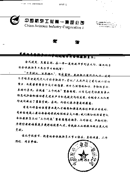 您的位置: 首頁 >新聞中心>南航要聞>詳細內(nèi)容 南航要聞 中航一集團發(fā)來賀信祝南航全體教師節(jié)日快樂 來源:啟航 作者:羅暉 攝影: 發(fā)布時間:2003-09-10 瀏覽次數(shù): 次 【字體:小 大】 啟航網(wǎng)訊 第十九個教師節(jié)到來前夕 ,中國航空工業(yè)第一集團公司向南航全體教師發(fā)來賀信,祝大家節(jié)日快樂,身體健康,工作順利,闔家幸福?。ň庉嫞毫_暉) 【打印正文】
