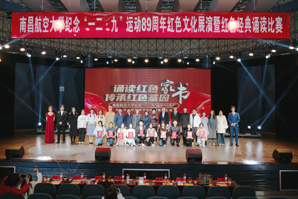 啟航網(wǎng)訊 為紀(jì)念“一二·九”抗日救亡運(yùn)動(dòng),引導(dǎo)青年學(xué)生銘記歷史,弘揚(yáng)愛(ài)國(guó)主義精神,12月9日晚,由校團(tuán)委主辦,經(jīng)濟(jì)管理學(xué)院團(tuán)委承辦的南昌航空大學(xué)紀(jì)念“一二·九”運(yùn)動(dòng)89周年紅色文化展演暨“誦讀紅色家書(shū) 傳承紅色基因”紅色經(jīng)典誦讀比賽在學(xué)校音樂(lè)廳舉行。黨委常委、宣傳部部長(zhǎng)劉芝平出席活動(dòng),校團(tuán)委、經(jīng)濟(jì)管理學(xué)院負(fù)責(zé)人及各學(xué)院團(tuán)委書(shū)記、青年學(xué)生代表共400余人參加。