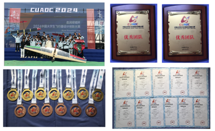 2024年中國(guó)大學(xué)生飛行器設(shè)計(jì)創(chuàng)新大賽總決賽在河北省定州市舉行。我校航模隊(duì)獲得了限重定點(diǎn)空投的團(tuán)體冠軍以及單項(xiàng)冠軍、季軍,并且獲得了一等獎(jiǎng)4項(xiàng),二等獎(jiǎng)4項(xiàng),三等獎(jiǎng)2項(xiàng)的優(yōu)異成績(jī);我校航模隊(duì)還被評(píng)為優(yōu)秀團(tuán)隊(duì),獲得了良好的聲譽(yù)。