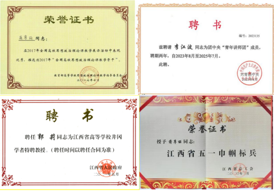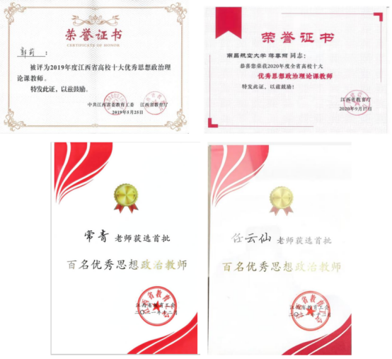 學校高度重視思政課師資隊伍建設,思政課教師隊伍結構和素質不斷優化,學院現有專任教師86人,柔性引進長江學者2名。全國高校思政課優秀教師2人,全國模范教師1人,國務院特殊津貼專家2人,全國國防教育專家1人;全國高校思想政治理論課教學骨干2人;團中央“青年講師團”成員1人。入選省哲學社會科學領軍人才2人,省新世紀百千萬人才2人,省“雙千”人才1人,省“井岡學者”特聘教授1人,省中青年學科帶頭人和省中青年骨干教師8人,省法學類教指委委員1人,省高校思想政治理論課“毛澤東思想和中國特色社會主義理論體系概論”分教指委主任委員1人、副主任1人,省高校思想政治理論課其他分教指委委員3人。入選省級教學團隊1個,省級“名師工作室”1個,省五一巾幗標兵1人,省優秀教師1人,省高校十大“優秀思想政治理論課教師”2人,省教學名師4人,省高校思想政治理論課名師5人,省百名優秀思想政治教師2人。獲批省“一課多師”教學團隊1項。