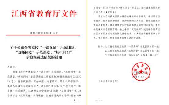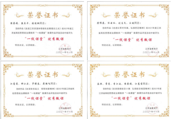 學院深入學習貫徹習近平總書記關于思政課建設的重要論述,積極落實教育部及省教育廳關于“大思政課”建設綜合改革的文件精神,統籌負責全省《毛澤東思想和中國特色社會主義理論體系概論》課“問題式專題化團隊教學改革”任務,通過課程創優、教師創優、資源創優,不斷匯聚“大思政課”建設走深走實的新動能新優勢。獲省級教學成果獎一等獎2項、二等獎2項,省級“一流”課程2項,省高校思政課教學改革創新團隊1個、省級“雙師同堂”示范課程1項、“師生同臺”示范課1項、“家門口”大思政課實踐基地1項,省級“最美思政課”1項,省優秀特聘教授1人、省優秀兼職教師2人;指導學生獲第七屆全國高校大學生講思政課公開課展示活動三等獎1項、省第七屆江西省學校共青團“微團課”展示交流活動二等獎1項。