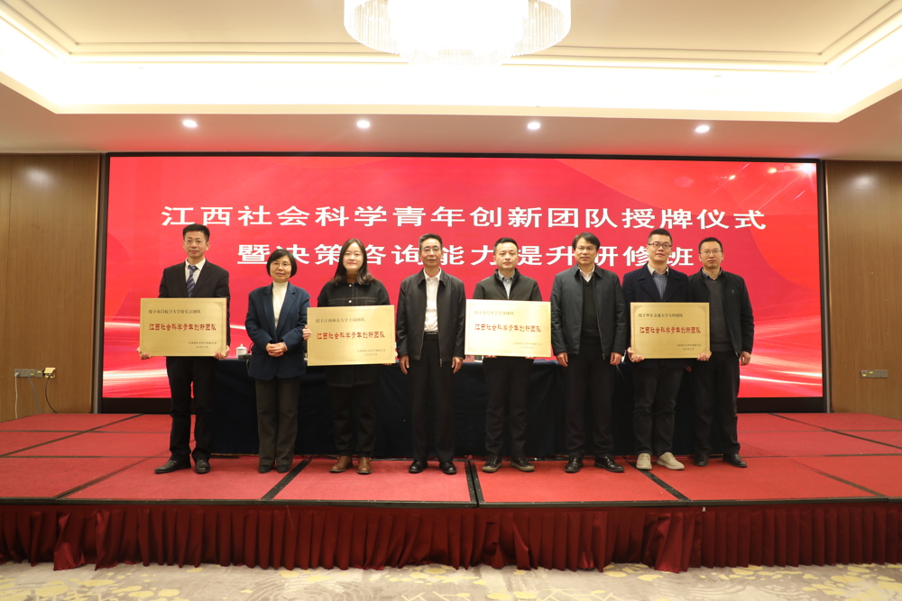 啟航網訊 12月20日至21日,江西省社會科學界聯合會(以下簡稱“省社科聯”)舉辦江西社會科學青年創新團隊授牌儀式暨決策咨詢能力提升研修班。我校經濟管理學院舒長江團隊參會,并接受江西社會科學青年創新團隊授牌。