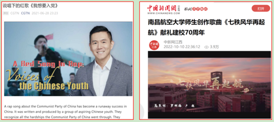 學院師生積極利用紅色文化資源,講述黨史故事,涵養(yǎng)初心使命,并在創(chuàng)作實踐中展現(xiàn)“藝術擔當”。我們創(chuàng)作了《我想要入黨》《七秩風華再起航》《第一面軍旗》《問天》等一批優(yōu)秀作品,這些作品得到了CGTN、人民網(wǎng)、新華社等國家級媒體的宣傳報道,并廣受好評。同時,我們依托“三下鄉(xiāng)”社會實踐活動、社區(qū)共建活動等平臺,將思政小課堂與社會大課堂深度融合,服務地方文化發(fā)展。學院團委榮獲省級“五四紅旗團委”稱號,“鄉(xiāng)遇美好”鄉(xiāng)村振興促進團被評為“暑期社會實踐省級優(yōu)秀團隊”,“藍天村晚”鄉(xiāng)村文藝志愿服務巡演項目在第四屆江西省青年志愿服務項目大賽中榮獲銀獎。