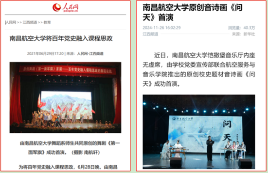 學院堅持“黨建”引領,緊密結合新時代黨的建設偉大工程,順應高校師生對美好生活的追求,充分發(fā)揮學院的學科優(yōu)勢。我們以“美育”為抓手,將初心使命、理想信念、歷史文化和時代精神等積極元素融入基層黨建工作,致力于全面提升學生的思想品德和藝術素養(yǎng)。通過筑夢空間黨員工作室、“厚德·精藝”大講堂、紅色講師團“藝心向黨”美育思政課、學生藝術團等平臺,我們傳承紅色基因,塑造紅色文化和航空報國精神的育人品牌。其中,《“筑夢空間”黨員工作室的143部曲》榮獲全省高校基層黨建工作優(yōu)秀案例二等獎。