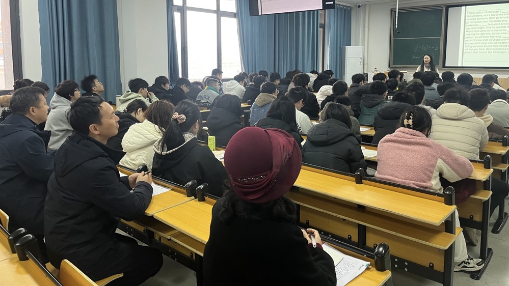 鄒建平一行實地查看了相關教學場所,聽取了外國語學院吳穎老師講授的《研究生英語》課程。課后,鄒建平與授課教師親切交流,共同探討教學方法,并就更好提升教學效果提出意見和建議。