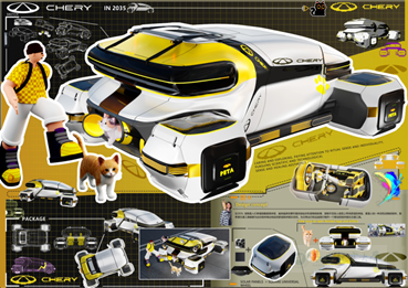 進(jìn)入全球前15強(qiáng)的彭寧同學(xué)以2035年青年與寵物相伴的需求為出發(fā)點(diǎn),將iCAR與寵物習(xí)性融合,把ICAR_Cat Mewmo設(shè)計成寵物和人玩樂互動的空間,兼具日常出行陪伴娛樂功能。徐夢晗以水陸兩棲沙灘車為載體,推出“左輪雙艙+潛水背包”雙模式系統(tǒng),可依深度靈活切換潛艙載往深水區(qū),背包彈出實(shí)現(xiàn)智能跟蹤輔助,覆蓋全流程個性化需求。周思彤同學(xué)的“浮香樞”香水概念車以“流動的芬芳”為靈感,車身線條仿香氛擴(kuò)散軌跡,透明材質(zhì)似香水瓶,車內(nèi)智能香氛系統(tǒng)隨駕駛模式釋定制香氣,融嗅覺藝術(shù)與工業(yè)美學(xué)于一體。唐俊勇同學(xué)“rope.01”以“天生愛玩(Born to Play)”為精神內(nèi)核,打破汽車僅作為通勤工具的邊界,將概念車深度融入懸崖攀巖、速降等極限戶外場景。