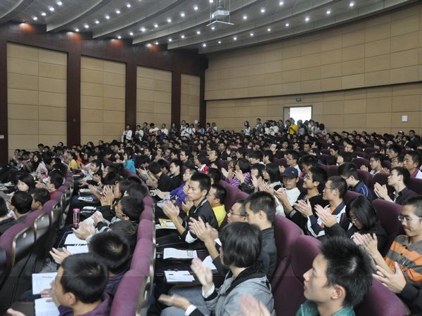 董教授開(kāi)門(mén)見(jiàn)山地指出“情商是大學(xué)生成才的神秘通道”。她強(qiáng)調(diào):世界上任何成功都不在瞬間,而在于全程;要獲得成功,必須要有正確的思想理念作指導(dǎo)。隨后,教授從“情商的起源”、“情商的五大要素”、“哈佛的精神文化”及“目標(biāo)的重要性”等方面逐一做了介紹。通過(guò)一個(gè)個(gè)生動(dòng)有趣的小故事深入剖析何為情商、闡述如何培養(yǎng)和提高情商,引起昌航廣大師生的共鳴,全場(chǎng)不時(shí)響起熱烈的掌聲。